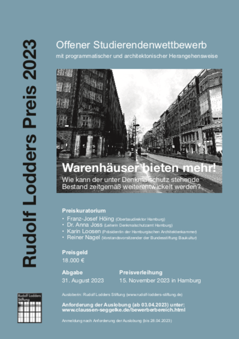 Die Rudolf Lodders Stiftung lobt 2023 unter Studentinnen und Studenten der Fachrichtung Architektur den 17. Rudolf Lodders-Preis aus.